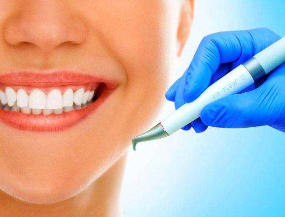 2 этап - AIRFLOW (удаление мягкого и пигментированного зубного налета) используется чистящий порошок FLASH pearl (NSК, Япония), PROPHYpearls (KAVO, Германия),